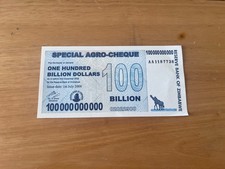 World Paper Money 2008 Zimbabwe 100 Billion Dollars Special Agro Cheque banknote