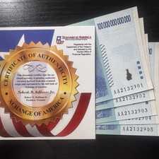 Zimbabwe 100 Trillion Dollars 2008 AA P-91 Banknote New UNC Zim Currency w/COA