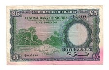 15.9.1958. Dark green on green and purple underprint. River scene and palm trees. Back: purple, fruit farming at right. Printer: W&S.