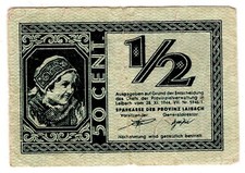 YUGOSLAVIA, SLOVENIA, LAIBACH OCCUPATION - 50 cent / half lire 1944 , circulated