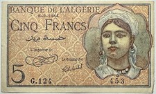 Algeria p94b: 5 Francs from 1944