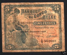 Belgian Congo p13Ad: 5 Francs from 1947