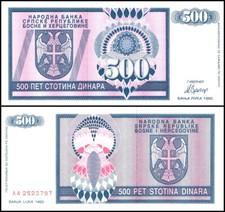 Bosnia and Herzegovina p1b: 500 Dinara from 1992
