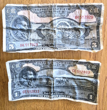 ND (1945). Black on orange and blue underprint. Emperor Haile Selassie at left. St. George's Square with equestrian monument to Menelik II with domed building in background at center. Back: red. Arms at center. Printer: SBNC.