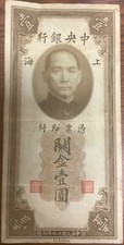 1930. Brown with multicolor guilloche. Portrait SYS at top center. Back: Bank building at left center. Printer: ABNC. Vertical format.