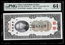 1930. Purple with multicolor guilloche. Portrait SYS at top center. Back: Bank building at left center. Printer: ABNC. Vertical format.
