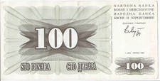 Bosnia and Herzegovina p6d: 100 Dinara from 1992