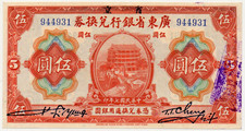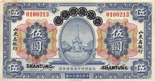 1924. Red and multicolor. Running horse at center. Signature varieties. Back: Great Wall at center. Printer: ABNC. With various numerical, letter and Chinese character overprints. SHANGHAI. (S/M #C291-2a).