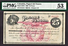 Colombia 25 Pesos 1/5/1905 Pick-297D About UNC PMG 53 Very Rare !