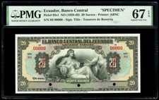 17.10.1939. Woman seated with symbols of commerce and industry at center. With text:CAPITAL AUTORIZADO 20,000,000 SUCRES. 3 signatures. Similar to p86. Printer: ABNC. Date at upper right center.