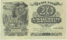 1932. Green and brown. Shepherd blowing horn at left. Back: Multicolor on gray-green underprint. Watermark: 20 between zigzag lines.