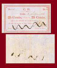 1872-1873. Black on dark blue paper. C.R. top center, handwritten dates and serial number . Handsigned (Lave). Single chain border. Uniface. Printer: Gazette Office, Levuka, Ovalau. Cancelled note.
