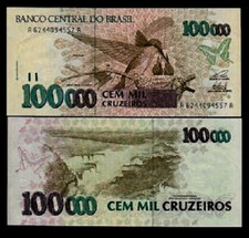 ND (1993). Brown, green, and purple on multicolored underprint. Hummingbird feeding nestlings at center, butterfly at right. Butterfly on left, Iguacu cataract at center on back. Series 6291-6733.