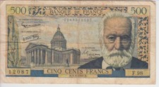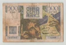 ND. 1958. 500 Nouveaux Francs on 50,000 Francs. Multicolor. Moliere at center. Back: Moliere at center. Overprint on France p136A. As specimen.
