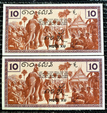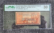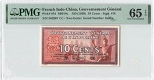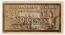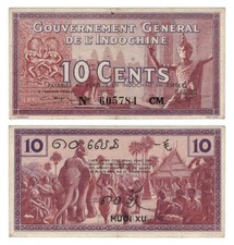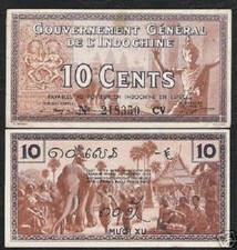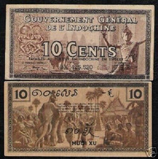 ND (1939). Red-brown. Sculptures at left, dancer at right. Back: Market scene with elephants. Le Tresorier General in 1 line at lower left.