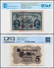 5.8.1914. Black on gray-violet underprint. Back: Blue. Germania at left and right. 7 digit serial number.