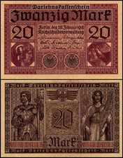 20.2.1918. Dark brown on carmine underprint. Minerva at left, Mercury at right. Back: Brown. Man in armor at left, allegorical woman at right.