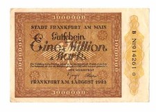 25.7.1923. 50 Millionen Mark. Black and lilac-brown with lilac tint at right. Uniface. 7 digit serial number.