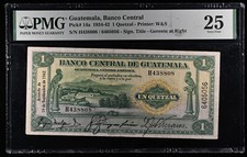 17.3.1934-19.9.1942. Deep green on lilac and ochre underprint. Farm buildings and truck at left center. Quetzal bird at left and right. Back: Monolith of Quirigua at center. Printer: W&S.