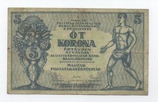 1919 Hungary 5/OT Korona Splits/Holes/Tears Poor Condition #15046