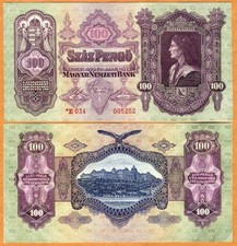 1.7.1930. Violet. Portrait King Mátyás at right. Series number without asterisk. Back: Violet and dark blue. Royal Palace at Budapest at center.