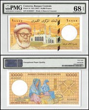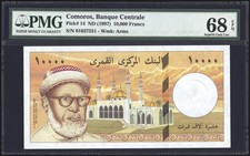 ND (1997). Yellow, brown, and blue on multicolored underprint. Two seated women weaving baskets at center. Al-Habib Seyyid O. Bin Sumeit at left, mosque at center on back.