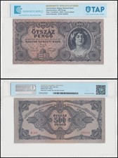 15.5.1945. Blue on dull lilac and orange underprint. Portrait woman wearing wreath at right. Back: First Russian word at upper left correctly spelled ???????. First letter ?.