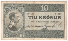 ND 18.9.1885 AND 12.1.1900 (1921). Brown and green. Portrait King Christian X at left. Fyrir Rikissjod Ãslands.