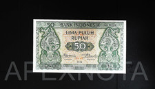 INDONESIA 50 RUPIAH 1952 P45 CU CHOICE UNC- PREFIX PPG PRINTER JEZ SCARCE