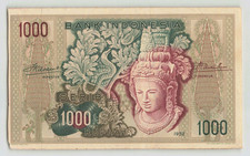 INDONESIA 1000 Rupiah 1952, P-48, Original a/UNC, No Folds (Handling/Corner).