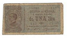 23.4.1914. Blue on pink underprint. Portrait King Umberto I at left. Back: Only denomination in oval at left.