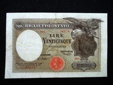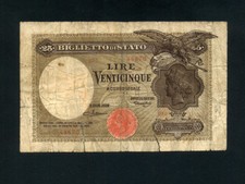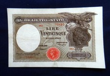 20.8.1923. Brown. Medallic head of "Italia" at right, eagle with flag above. Seals: Type A/E. Like p42. Back: Head of Minerva in oval at left. Watermark: Head of Minerva. Series 117-120.
