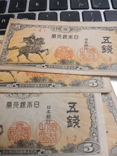 ND (1944). Black on yellow underprint. Equestrian statue at left. Japanese text only. Specimen with small stamping: Mi-hon. Regular block number.