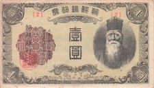 1902. Black on blue-green underprint. With 10 pronged star at top center. S. Eiichi at right. Back: Dark blue. Stars in corners on face. (Meiji yr. 35).