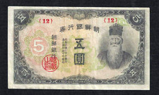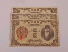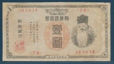 Meiji yr. 44 (1911), (1915). Black on light red underprint. Man with beard. ONE YEN at left. Regular style serial number (Japanese).