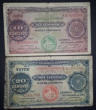 Mozambique 1914 Two Banknotes 10 Centavos and 20 Centavos