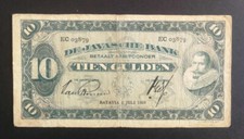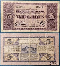2.1.1926 - 5.4.1928. Violet. Without vignette. Back: Violet and brown. Javasche Bank building in Batavia at center; legal text in four languages: Dutch, Javanese, Chinese Watermark: J's and B's in a honeycomb pattern. Printer: JEZ.