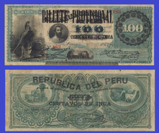 1.9.1881. Blue. Cherub at upper left and right, arms at top center. Without overprint. Signature titles: SECRETARIO DE HACIENDA Y COMERCIO and JUNTA FISCAL on new notes.