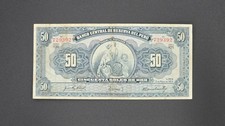 1.9.1881. Blue. Cherub at upper left and right, arms at top center. Overprint: Oval: VALE POR / CINCUENTA SOLES / 1881 / EMISION FISCAL on p16.
