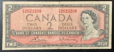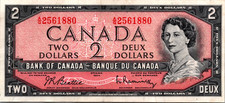 1954 (1961-1972). Black on red-brown underprint. Young Queen Elizabeth II at right with modified hair style. Back red-brown with Quebec scenery. Printer: BABNC.
