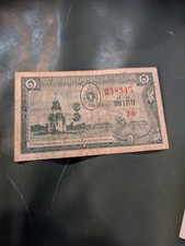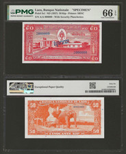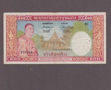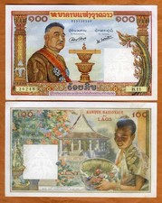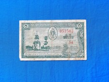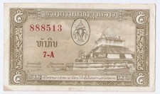 ND (1957). Brown on pale orange underprint. Lao Tricephalic Elephant Arms at upper center. That Makmo at right. Back: ox cart. Security dots. Printer: SBNC.