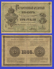 1866-1880. Black on red underprint. Crowned double-headed eagle above monogram of Czar Alexander II at left. Back: M. Feodorovich at center.
