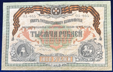 1919. Black on lilac, green and multicolor underprint. Seated woman with globe at left. Proof. Rare.