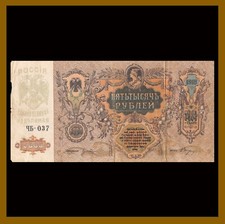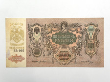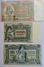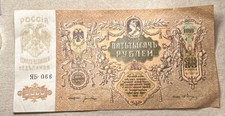1919 (1920). Blue on yellow and multicolor underprint. 10 signature varieties. Back: Arms at center. Text in 7 languages, says: "Workers of the World, Unite!" Watermark: Stars.