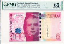 Bank of Scotland Scotland 100 Pounds 2007 Prefix AA PMG 65EPQ