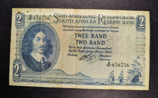 (1962-1965). Rust brown on multicolor underprint. Portrait of Jan van Riebeeck at left, first line of bank name and value in Afrikaans. Watermark: Jan van Riebeeck. 137 x 78mm.