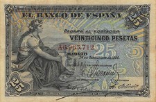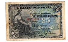 - Denomination & Currency:25 Pesetas