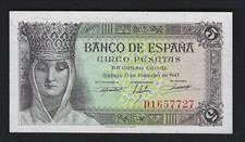 13.2.1943. Black on multicolor underprint. Queen Isabel la Católica at left. Back: Columbus with his men at center. Printer: FNMT. Specimen.