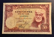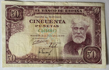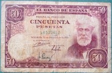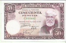 31.12.1951 (1956). Lilac-red on multicolor underprint. Santiago Rusiñol at right. Back: Rusiñol's Jardines de Aranjuez. Watermark: Santiago Rusiñol. Printer: FNMT.