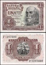 22.7.1953. Brown and black on multicolor underprint. Marqués de Santa Cruz at right. Back: Old sailing ship. Printer: FNMT. Specimen.